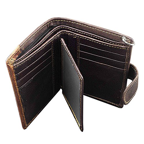 • this genuine leather bifold wallet has many card slots, come with a anti-lose safe chain. very high quality.