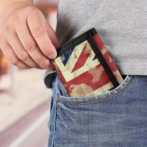 • High Quality Material: Vintage Union Jack British Flag Rfid Wallet for Men Is Made from Nylon-Polyester Blend Fabric, Which Is Sturdy and Wear-Resistant. Personalized Vintage Union Jack British Flag Wallet for Men Equipped with a Metal Loop Inside for Hanging Keys, Keychain, Mini USB Flash Disk, Lanyard, Etc