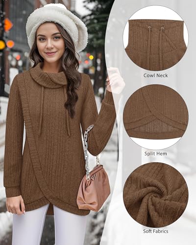 • Unique design: This cowl neck sweater not only has an elegant collar design, but also modifies the neck line, bringing warmth while also adding a touch of elegance. The cross-over hem cleverly disguises the tummy and creates a more perfect figure