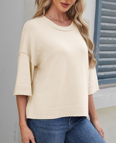ZDC Women's Oversized Sweaters Summer 3/4 Sleeve Casual Cropped Tops Lightweight Loose Fit Knit Pullover 3