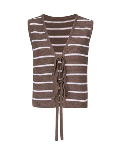 HOT ! SOLY HUX Women's Sleeveless Striped Sweater Vest V Neck Tie Bow Crochet Knit Tank Tops Casual Loose Cardigan