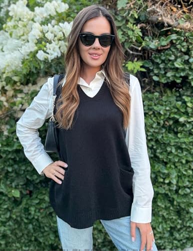 Zeagoo Women's Sweater Vest 2025 Oversized Sleeveless V Neck Pullovers with Pocket Knitted Fall Outfits 1