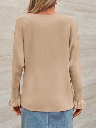 • CHIC STYLE: Batwing sweaters for women with long sleeve , boat neck, dolman sleeve, ruffle cuffs, strethy sweater top, going out tops, off the shoulder sweater, cozy warm fall winter sweater jumper, chic flattering solid colors, loose pullover sweaters.