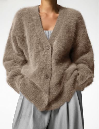 Arssm Womens Fuzzy Cardigan Sweater Long Sleeve Cardigans Button Down V Neck Fluffy Knit Top Fashion 2025 Knitwear 2