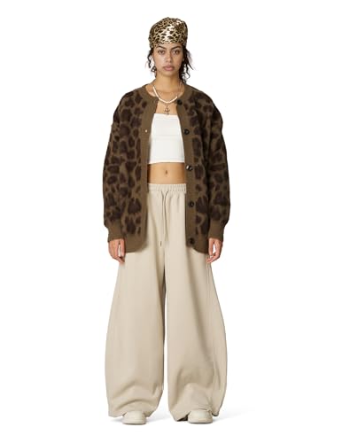 HOT ! Aelfric Eden Leopard Print Cardigan Sweaters for Women Oversized Cheetah Y2k Crewneck Button Down Long Sleeve Cardigans