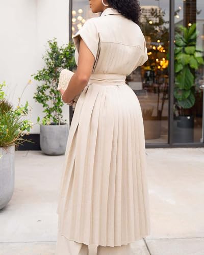 Tbahhir Women's Casual Jacket Outfits 2 Piece Pants Sets Pleated Long Cardigan Wide Leg Baggy Trousers Business Suit 6