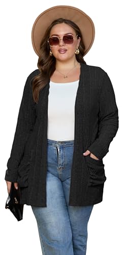 OLRIK Plus Size Cardigan for Women Lightweight Soft Knit Stretchy Open Front Long Sleeve Sweater with Pocket Fall Outfits 1
