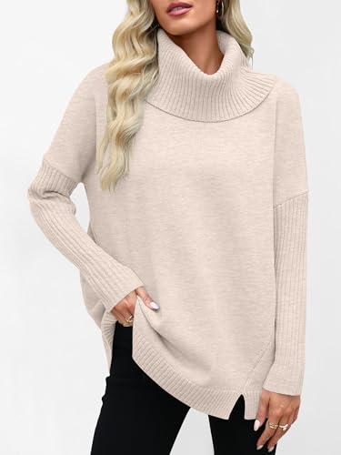 • Features - This oversized sweater top for women features classic turtleneck, long sleeve,stylish side splits and hemline,tunic top sweater,knitwear casual style. you can dress it for any casual occasions, It will be your favorite in your wardrobe.