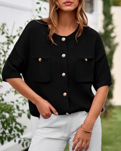 • FEATURE: Womens Cardigan (Wash Tips: Don't Tumble Dry) / Short Sleeve Cardigan / Button Up Sweaters For Women / Crew Neck / Drop Shoulder / Half Sleeve / Front Pocket / Loose Fit