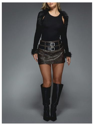 Floerns Women's Fur Trim Long Sleeve Cardigan Open Front Knit Cropped Bolero Shrug Sweater 5