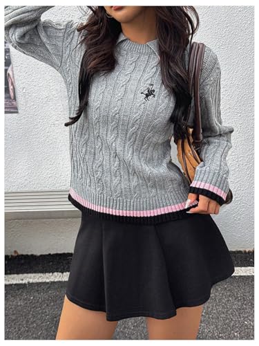 • Features: Preppy sweater for women, collared neck, striped trim, long sleeve, cable knit, casual pullover top