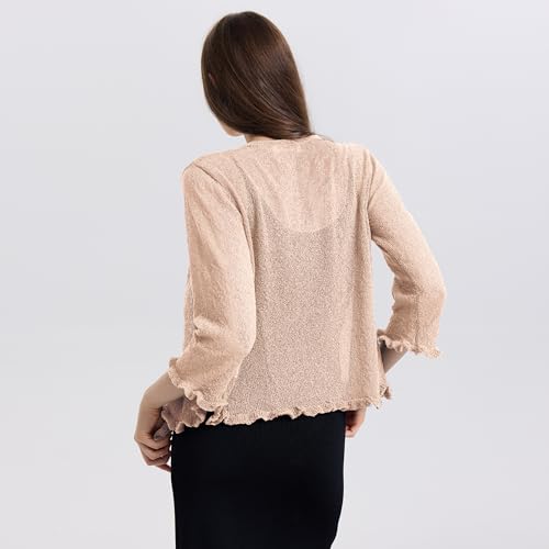 Women's 3/4 Sleeve Tie Open Front Sheer Mesh Lightweight Shrug Cardigan Knit for Dresses 3