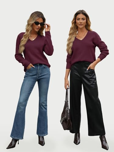 • Design: The sweater features a classic V-neck design, adding a touch of elegance to your outfit. The long sleeves provide coverage and warmth during colder days, making it a versatile choice for fall and winter. The solid color design adds simplicity and versatility, allowing for easy pairing with different bottoms and accessories.