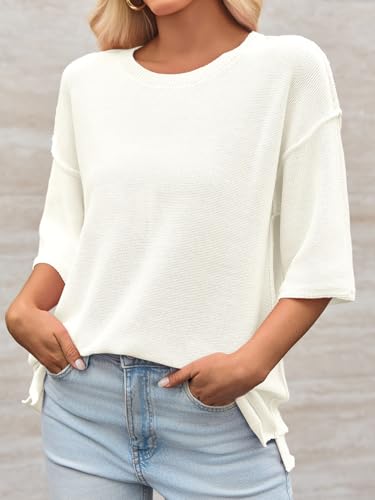 Cicy Bell Womens Oversized Sweaters 3/4 Sleeve Summer Casual Knitted Tops Crewneck Lightweight Loose Pullover Blouses 4
