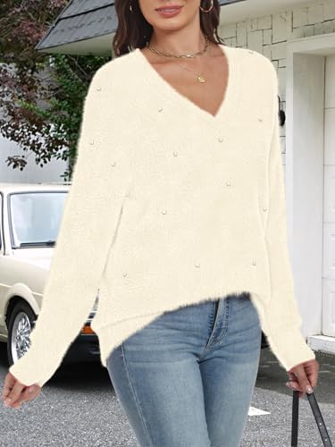 • Design: Soft and fluffy sweater with pearls embellished, V neckline, long sleeve, floral print, oversized, loose-fitting pullover style