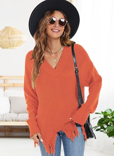 • Cute sweater to add a little variety to your fall wardrobe!Ripped on the neck and cuff,fringe symmetrically distressed on the bottom,women's long sleeve drop shoulder sweaters
