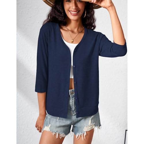 3/4 Sleeve Cardigan for Women Lightweight Button Down Cardigan Knit Shrugs Sweater Tops 3