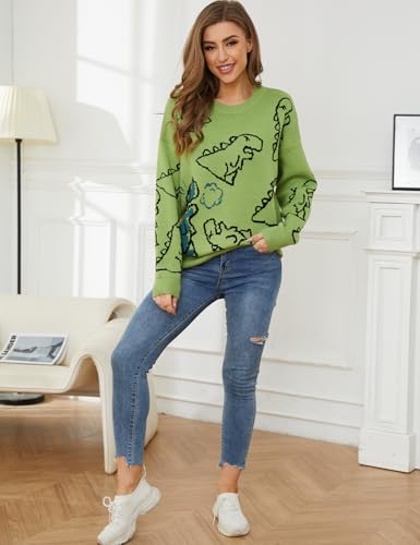 • Unique Design: The oversized sweater features with round neck, long sleeve,, dinosaur cartoon graphic, pullover sweater, cable knit, soft chunky sweater, and in causal and loose style.