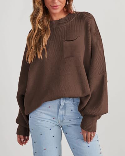 • Chic Ribbed Knit Sweater: Crewneck, batwing sleeves + side splits & chest pocket – loose fit for effortless style. Trendy pullover perfect for jeans or leggings.