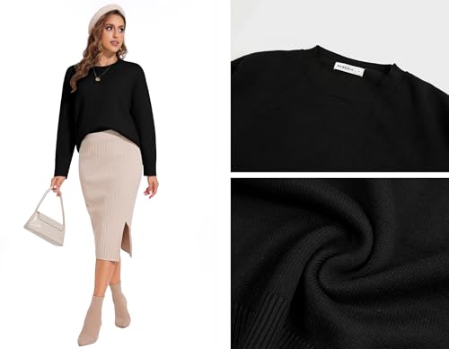 HOT ! Women's Crewneck Long Sleeve Sweaters 2024 Fall Winter Loose Casual Ribbed Knit Side Slit Pullover Tops