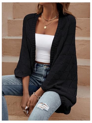 Floerns Women's Open Front Dolman Sleeve Loose Cardigan Sweaters Shrugs Ribbed Knit Tops Casual 1