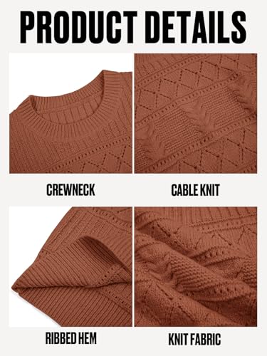 Yousify Womens Long Sleeve Sweaters Casual Crewneck Cable Knit Crochet Loose Fit Fall Pullover Tops 6