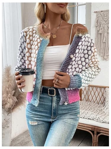 Floerns Women's Ombre Marled Knitwear Long Sleeve Button Front Cardigan 6