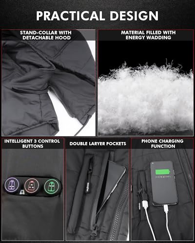 More information about DUKUSEEK Heated Vest with Hood, Lightweight Battery Charged Electric Heating Vest with Detachable Hoodie for Hiking