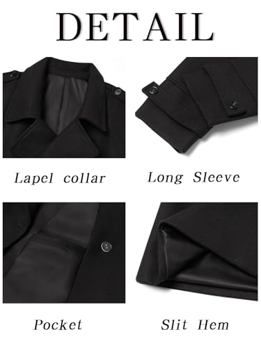 • Features: Winter overcoats for men, designed with double-breasted, notch lapel collar and two slant side pockets, back adopt streamline design, long regular fit trench coat wool jacket coat.
