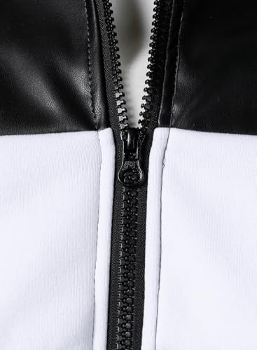 • 【Details】:3 Color Block with High quality Pu faux leather/Varsity Collar With Adjustable Zipper Detailing/Rib Knit Cuffs And Hem For Comfort/Two side pockets are convenient for your phone and card.