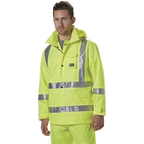 HV Men's Class 3 High Visibility 300 Denier Ripstop Waterproof Rain Jacket -Lime, XL 1