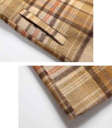 FTIMILD Mens Wool Blend Plaid Coat Warm Winter Trench Coat with Soft Scarf Single Breasted Overcoat 6