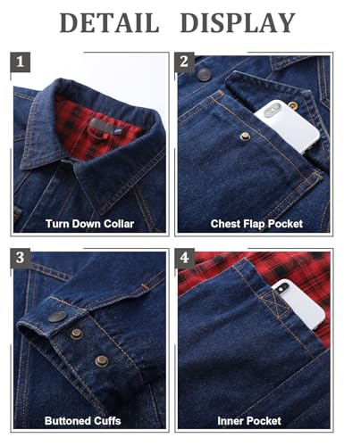 PEHMEA Men's Lined Flannel Denim Stylish Cowboy Trucker Coat Snap Button Rugged Western Shirts Jackets 4