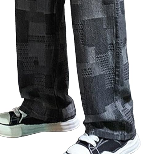 Denim Cargo Pants for Men Y2k Baggy Jeans Vintage Checkerboard Denim Jeans Streetwear Straight Leg Trousers 1