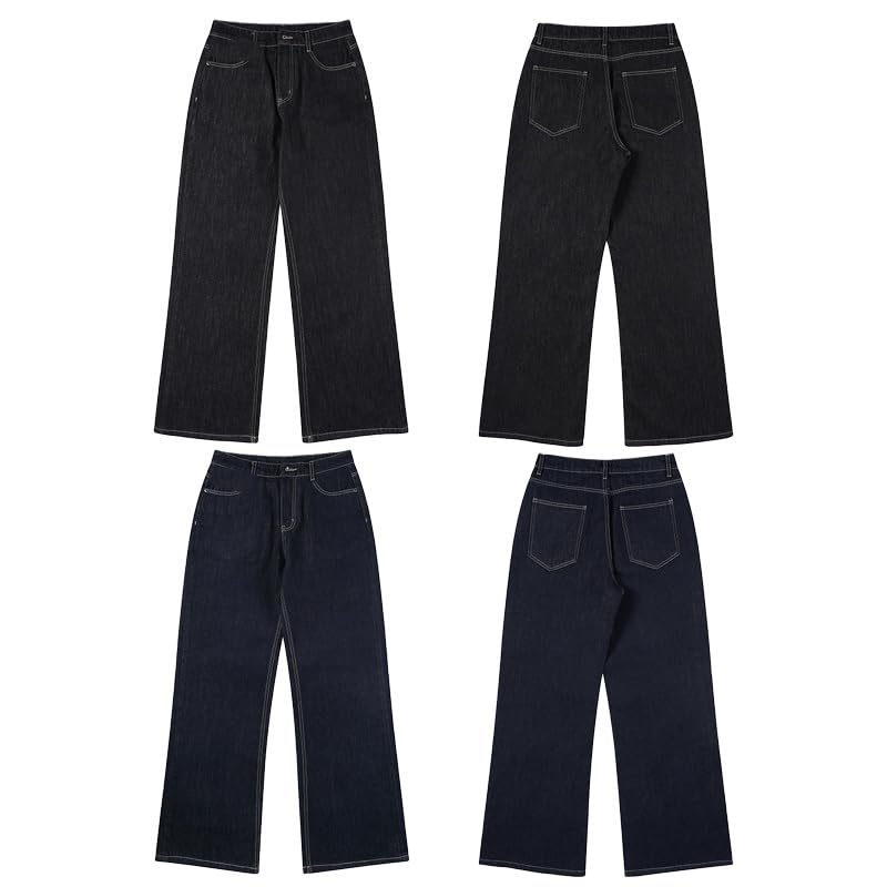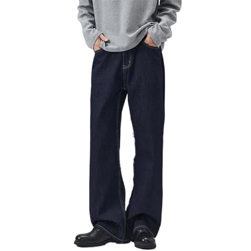 Men's Summer Loose Fit Straight Leg Jeans Navy Blue Pants 4
