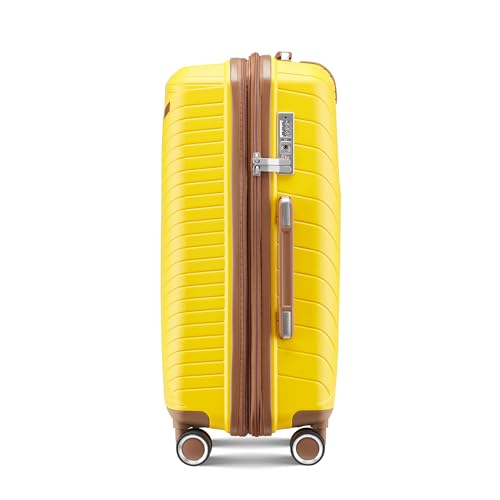 Travel with Lightweight Luggage Set, Expandable Design, 4 Double 360° Spinner Wheels, Durable PP Material, Yellow 7