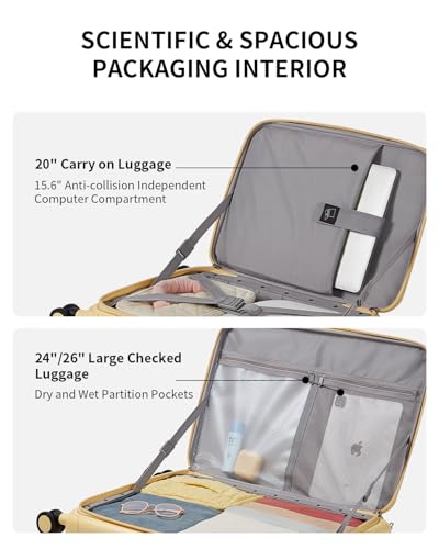 • 【FRONT-OPENING ORGANIZATION SYSTEM】Aji 20 inch luggage with 15.6" computer compartment. Get emergency-ready with revolutionary front opening luggage that delivers 3-second retrieve and place items. Our industry-leading 30% expandable capacity, effortlessly solving insufficient storage capacity while maintaining streamlined dimensions.