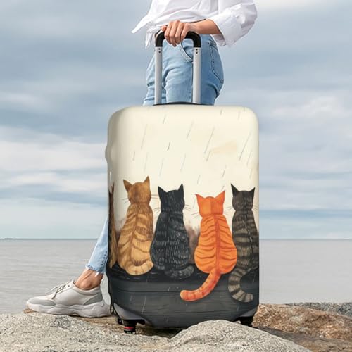 Four Cats Watching Rain Travel Luggage Covers - Elasticity Suitcase Covers Protector for Luggage 18-32 Inch 5
