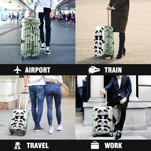 Elastic Luggage Cover Stretch-Fit Suitcase Protector Secure beautiful Sleeve for Big Luggage Easy Zip Handle Access Stylish Travel Accessory for Enhanced Luggage Protection Panda Stack 6