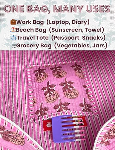 Cotton Quilted Tote Bag for Women – Large Beach & Travel Tote with Zipper, Reusable Grocery Bag 5