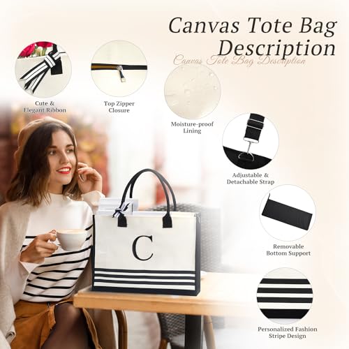 • Personalized Initials Stripe Pattern Design: This unique women's canvas tote bag is designed with fashionable and classic stripes, which can be versatile and dynamic, suitable for any occasion as a gift for her. Such as Valentine's Day gift, Mother's Day gift, mom gift, gifts for grandma ideas, Christmas gift, birthday gift, teacher gift, sister gift, best friend gift and bridesmaid gift.