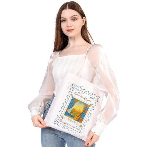 MEIKIUP Barcelona Canvas Tote Bag Barcelona Spain Trip Merchandise Barcelona Travel Souvenirs Shopping Bag 7