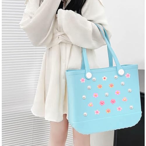 HOT ! Accessories for Bogg Bag, 23 Pcs Floral Pearls, Compatible with Women's Rubber Beach Bag Tote Handbag