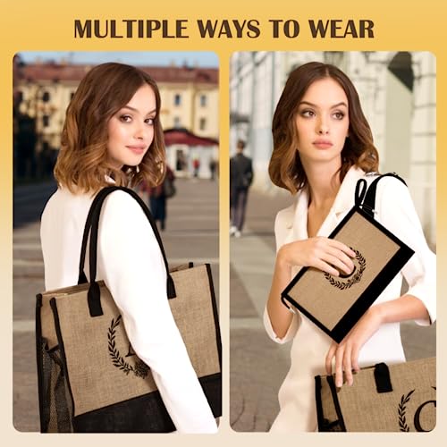 • 【PERSONALIZED GIFT FOR WOMEN】Our personalized initials embroidered jute tote bag and makeup bag are perfect gifts to give her on various important days. Such as Mother's ay gift, Teacher's day gift, Christmas gift, Thanksgiving gift, Anniversary gift, Wedding gift, Graduation Gift, Birthday gift, Valentine's day gift, Best friend