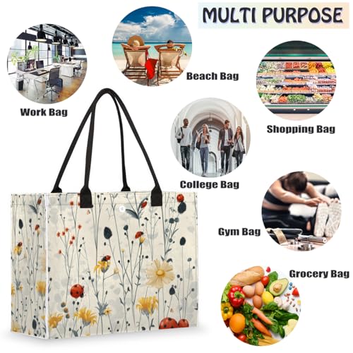 HOT ! Floral Ladybird Tote Bag for Women Large Beach Bag Reusable Tote Bags for Work Travel Beach Shopping