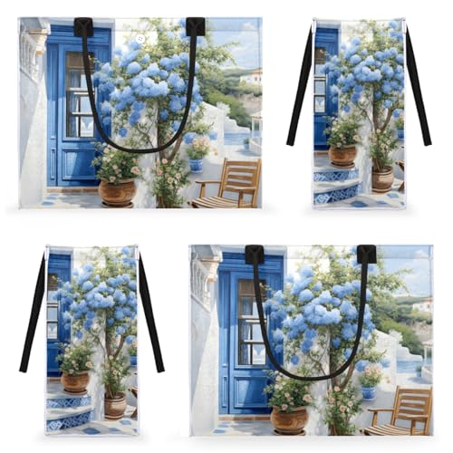 HOT ! Seaside Blue Flowers Tote Bag for Women Large Beach Bag Reusable Tote Bags for Work Travel Beach Shopping