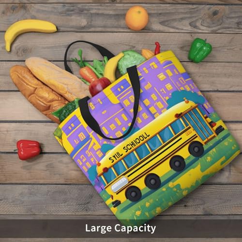 More information about School Bus Print Tote Bags, Large Capacity Zipper Shoulder Bag, For Shopping, Work, Daily