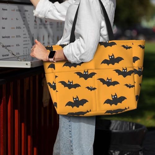 • Extra-Large Storage with 7 Compartments: Sized at 17.7 x 15 x 6.7 inches, this Cute Black Bat Print large tote bag includes a spacious main compartment, zippered inner pocket, two internal slip pockets, and four exterior pockets. Ideal as a tote bag with zipper for organizing beach stuff, travel gear, or work supplies