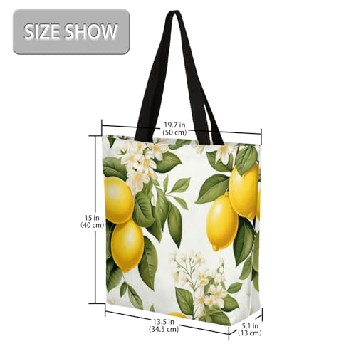 Lemon Blossom Leaf Large Capacity Canvas Tote Bag Stylish Handheld Shoulder Bag Reusable Shopping Bag for Work Travel Beach Trips Shopping 6