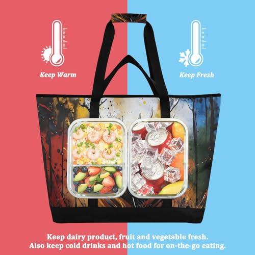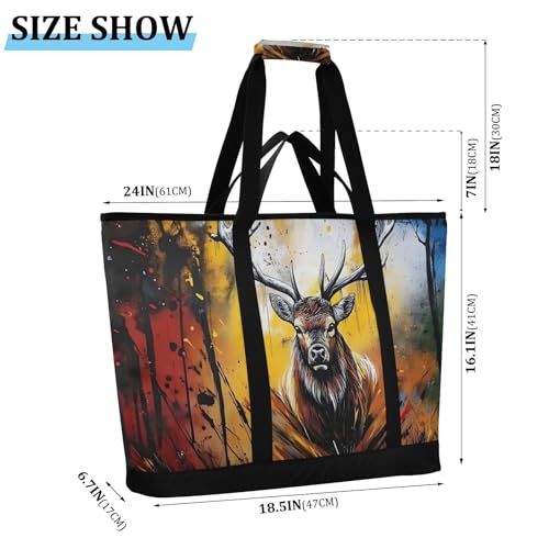 HOT ! Elk Head Graffiti Large Insulated Tote Bag for Grocery Shopping Reusable Tote Bags for Women Men, Cooler Bag with Zippered Top & Handles for Beach Picnic Travel